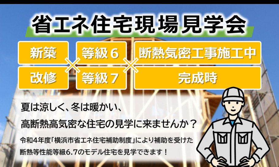 夏は涼しく、冬は暖かい、高気密高断熱な住宅の見学にきませんか? 令和4年「度横浜市省エネ住宅補助制度」により補助を受けた断熱等性能等級6、7のモデル住宅を見学できます!
