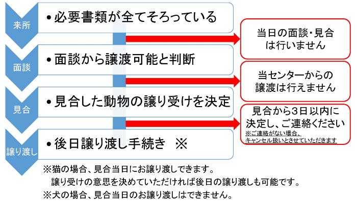 動物の飼育環境やライフスタイル等の確認をさせていただき、適正に終生飼育することが難しいと判断した場合は、譲渡をお断りすることもあります。あらかじめご了承ください。
