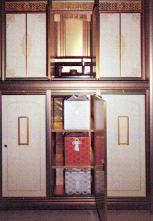 納骨壇上部は、扉を開くと自動的に点灯する照明、香炉、及び花立が設置されている祭壇になっております。また、納骨壇下部のご遺骨収納部の大きさは次のとおりです。