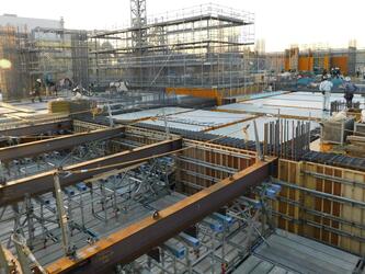 地下1階の足場が解体され巨大な空間が現れました。地下には130台の車両が駐車可能です。