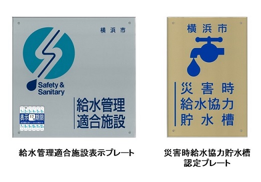4.横浜市から、認定決定通知書、災害時給水協力貯水槽認定プレートをお渡しします。プレートは施設の見やすい場所に掲示してください。