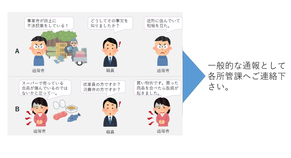 - 通報者の氏名および住所(匿名でも可)、電話番号、あるいはメールアドレスなどの連絡先と連絡方法