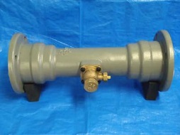 フランジ式の水道メ-タ-に使用するメ-タユニットにおいて、水道メ-タ-を接続する施工性を向上させた接続継手です。