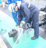 水道管路新設・更新時の管清掃排水作業に使用し、作業の安全性向上に寄与します。
