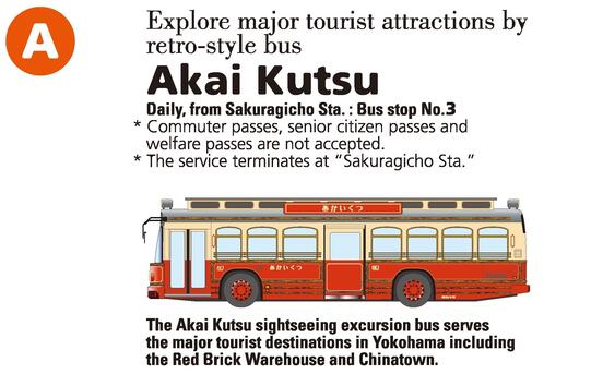We provide many kinds of busses for sightseeing. One time fare:Adult¥220, Child 110.