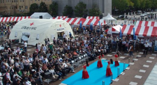 Le dernier point sur lequel j’insisterai, ce sont les cours de japonais offerts par YOKE(外部サイト). Comme le reste de ses activités, YOKE mise sur les bénévoles afin d’aider les résidents étrangers avec leur étude du japonais. Effectivement, quand je suis arrivé le jour de ma visite des lieux, il y avait classe. Et quelle classe! Les étudiants pratiquaient les appels d’urgence. Le personnel des différents services, tels que les pompiers, étaient sur place pour aider à rendre l’expérience aussi formative qu’authentique. Je n’avais jamais vu de telle classe! Même les étudiants possédant un vocabulaire limité ont pris part à la pratique, leur démontrant qu’il ne faut pas être timide et que l’emploi de la langue ne se limite pas à la vie quotidienne. De plus, les cours offert par YOKE prennent 2 formes : il y a les cours magistraux et les cours à l’extérieur, dans la ville pour s’habituer à parler avec les gens en participant à des événements. Et des événements à Yokohama, il y en a beaucoup et souvent !