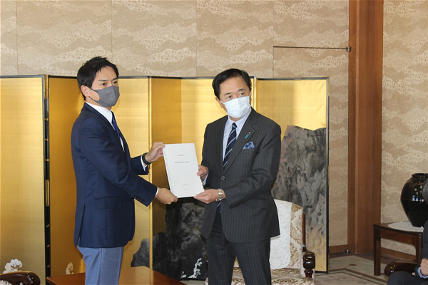 - 本日、令和4年度神奈川県予算に対する要望書を黒岩祐治神奈川県知事に提出しました。市民・県民の皆様の安全・安心なくらしを守り、市と県がともに未来に向けて発展していくため、現状に対する要望のほか、将来に向けて取り組むべき課題へのご提案という観点でひとつひとつ検討し、まとめたものです。私からは、新型コロナウイルス感染症対策など、特に力を入れて要望する5つの項目を重点要望として、直接県知事に説明いたしました。