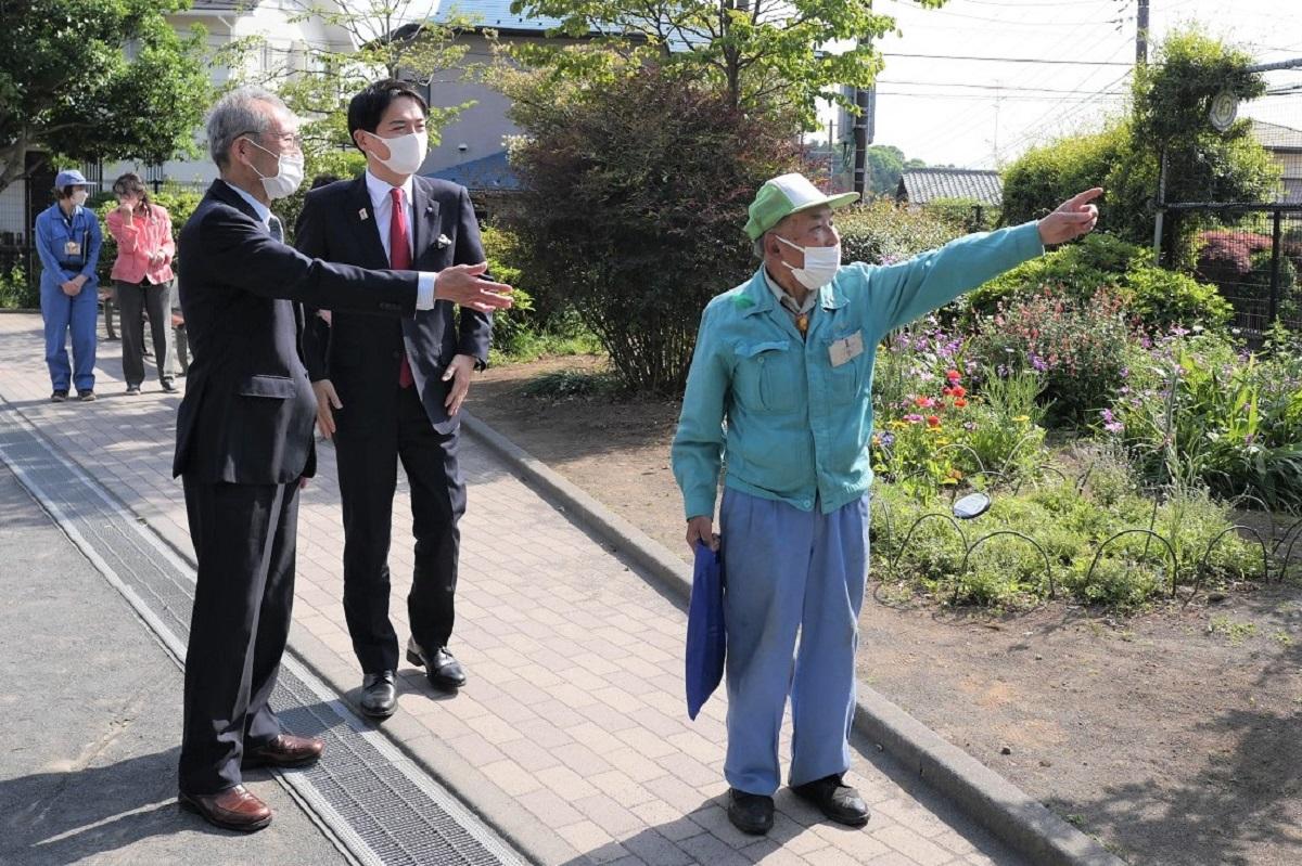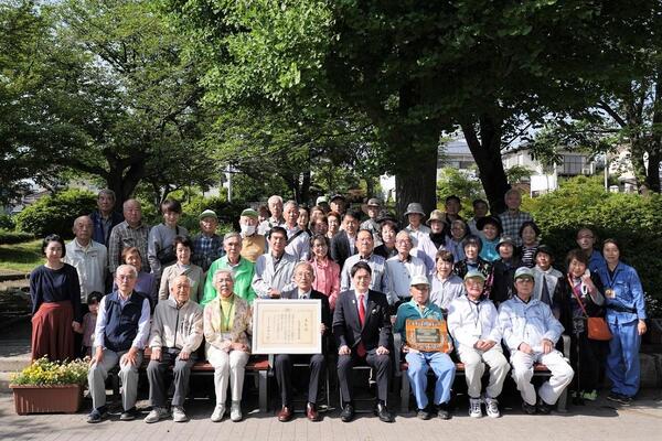 この公園を管理する大原西公園愛護会は、先月、横浜市の公園愛護会として初めて緑化推進運動功労者内閣総理大臣表彰を受賞しました。訪問当日は40人を超える公園愛護会の方々に集まっていただき、皆さまのお話をお伺いし、地域の活気・活力を感じることができました。地域の皆さまが一体となって、公園が憩いの場となるよう活動していただいていることに心より感謝申し上げます。