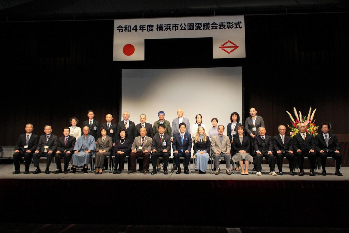 横浜市内で長年にわたり、公園の清掃や除草、花壇づくり等の活動に貢献していただいた方や団体を表彰する「横浜市公園愛護会表彰式」が開催されました。