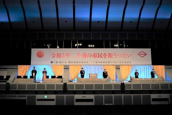 横浜アリーナで開催された「二十歳の市民を祝うつどい」に出席し、一生に一度の節目の日を迎えられた二十歳の市民の皆さまにお祝いのご挨拶をさせていただきました。