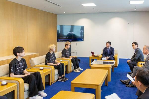 2023年9月に中国・杭州で開催される「第19回 アジア競技大会」より正式種目となったeスポーツの日本代表に内定された、横浜を本拠地とするプロeスポーツチーム「VARREL(ヴァレル)」の選手3名や関係の皆さまと面会しました。