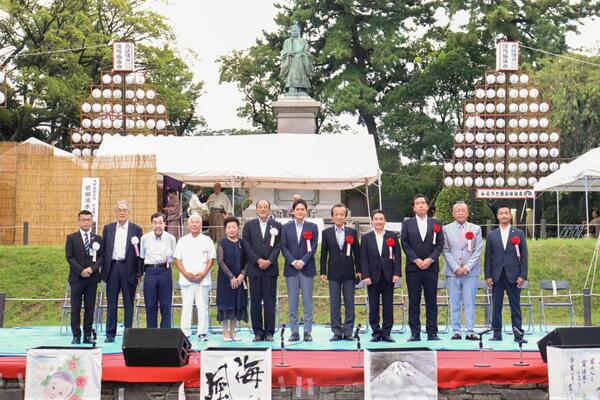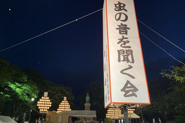 虫の音を聞く会は、井伊直弼公に縁のある掃部山(かもんやま)公園を、万灯(まんどう)や雪洞(ぼんぼり)で灯し、鈴虫の音を聞きながら夏の夜を情緒豊かに過ごす、西区伝統のお祭りです。