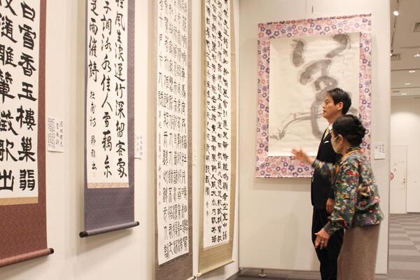 私もいけ花、書道、絵画などの展示作品を鑑賞し、大いに楽しませていただきました。