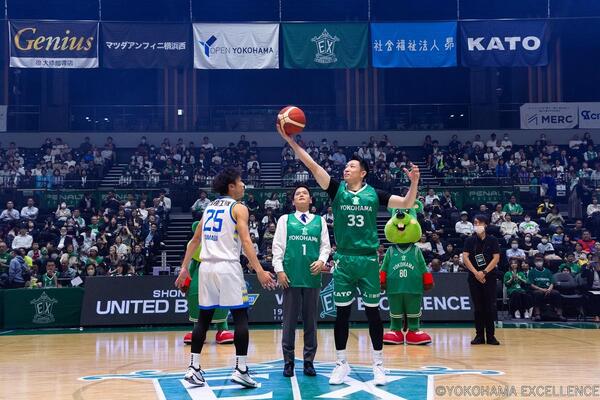 横浜武道館で開催された、横浜エクセレンスのホーム開幕戦で、ご挨拶とティップオフセレモニーをさせていただきました。