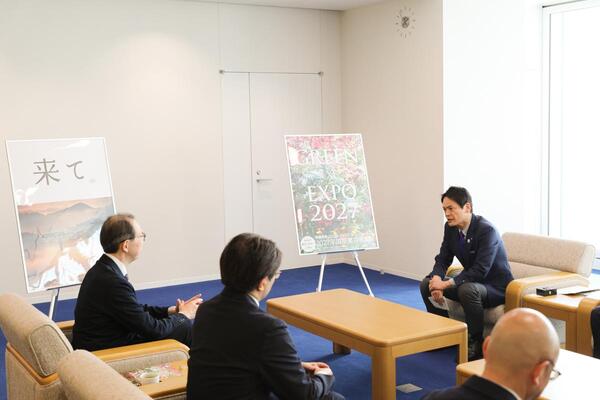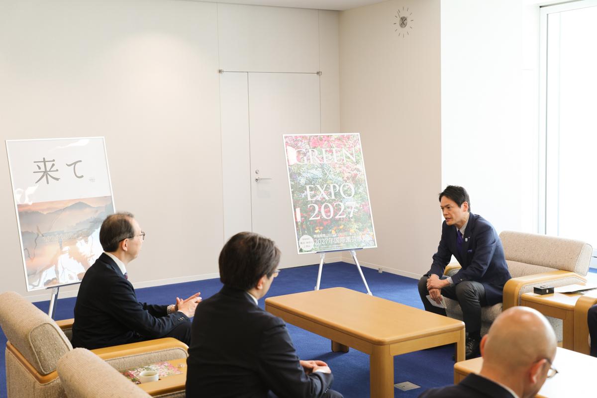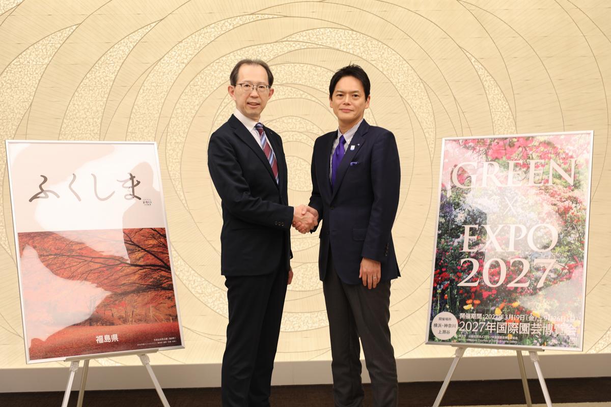 知事から日頃の支援への感謝のお言葉をいただき、私からは2027年の国際園芸博覧会「GREEN×EXPO 2027」についてご案内し、福島の魅力を世界に発信する機会にもしていきたいとお伝えしました。