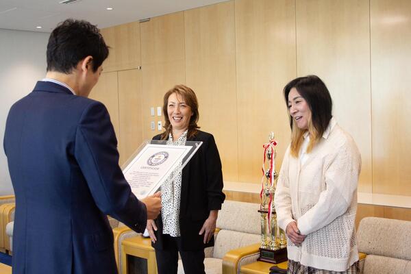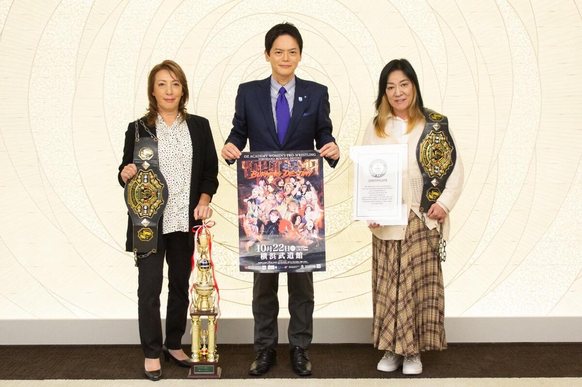 「タッグチームプロレスリングチャンピオンシップを優勝した最高齢ペア(女性)」の記録名でギネス世界記録に認定された、緑区拠点の女子プロレス団体「OZアカデミー」の代表である尾崎魔弓選手、タッグを組んだジャガー横田選手と面会しました。