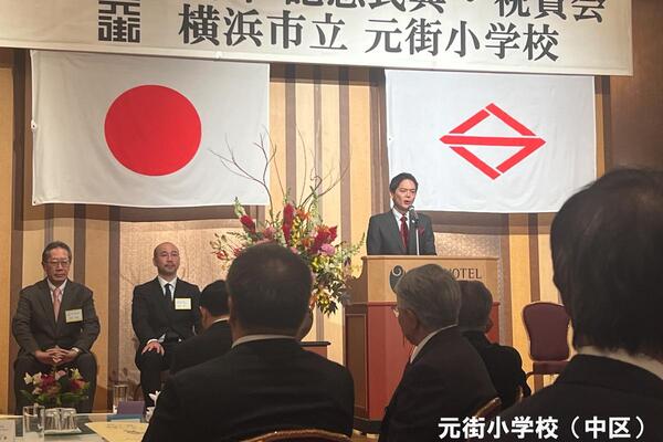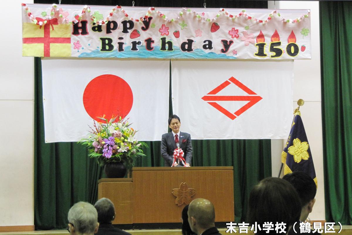 鶴見区末吉小学校・中区元街小学校の創立150周年記念式典でご挨拶をしました。