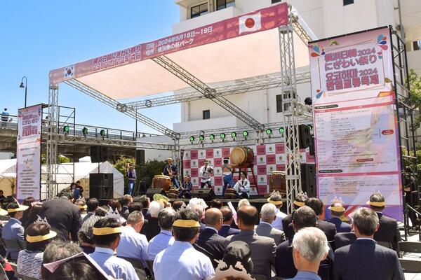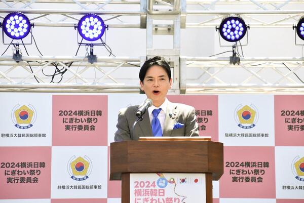 象の鼻パークで「2024横浜日韓にぎわい祭り」が開催され、開会式でお祝いのご挨拶をさせていただきました。