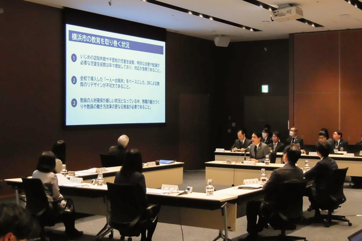 「横浜市総合教育会議」を開催し、「今後の横浜の教育政策について~第5期横浜市教育振興基本計画の方向性~」をテーマに、教育長と教育委員の皆さまと活発な議論を交わすことができました。