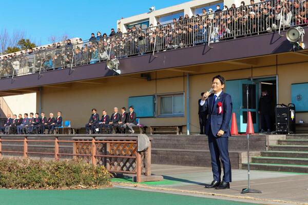 1月5日から2月24日にかけて開催されている「第50回 横浜少年サッカー大会市長杯」の開会式でご挨拶させていただきました。 会場には、参加される150チーム、約2,750名の選手やコーチの皆さまが集まってくださり、選手の皆さんの元気な入場行進や選手宣誓の言葉に、見守る保護者の方々の笑顔があふれ、私もたくさんの元気をいただきました。