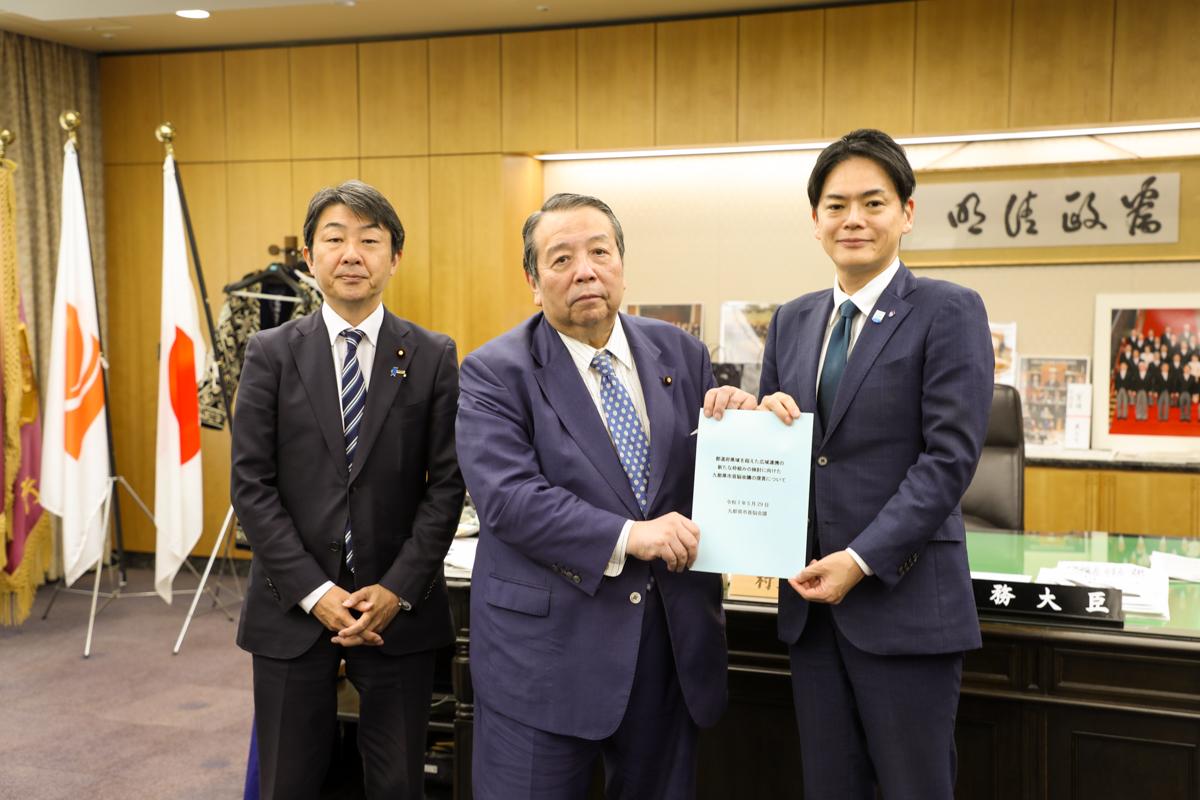4月に開催した「第87回 九都県市首脳会議」における合意に基づき、座長として、橘内閣官房副長官に「地方分権改革の実現に向けた要求」を、村上総務大臣と古川総務大臣政務官に「都道府県域を超えた広域連携の新たな枠組みの検討に向けた九都県市首脳会議の提言」を手交しました。