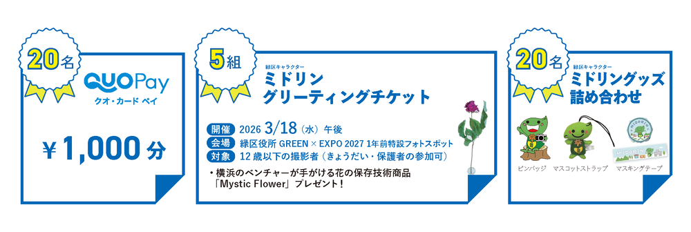 - 本イベントは横浜市緑区区政推進課により実施されています。本イベントについてのお問い合わせは株式会社クオカードではお受けできません。