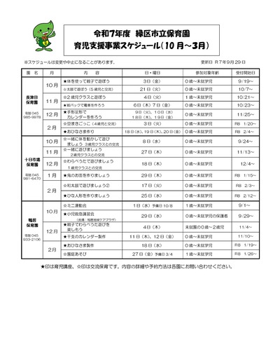- 緑区内市立保育園の子育て支援事業