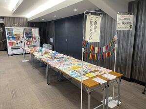 講演会当日は、緑図書館で貸出可能な関連図書を100冊展示しました。