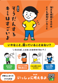 困っていることやイヤなこと、だれかに話したいな、と思ったら、ぜひ相談して。ガマンしないでいいよ。いっしょに考えよう。24時間365日つながるところやLINEで相談できるところもあるよ。まずは話してみよう!