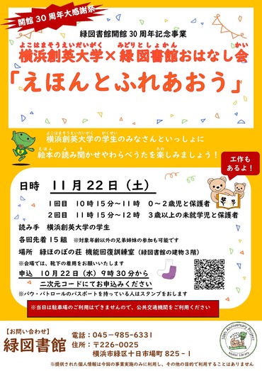 【終了しました】横浜創英大学×緑図書館おはなし会「えほんとふれあおう」