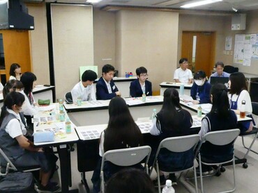 また、10月1日(水曜日)に、霧が丘学園中等部、十日市場中学校、緑が丘中学校の図書委員の交流会を開催しました。ヒトハコ図書館の製作にあたっての感想や普段の図書委員会の活動についての意見交換、自身のお気に入りの本の紹介等を行いました。