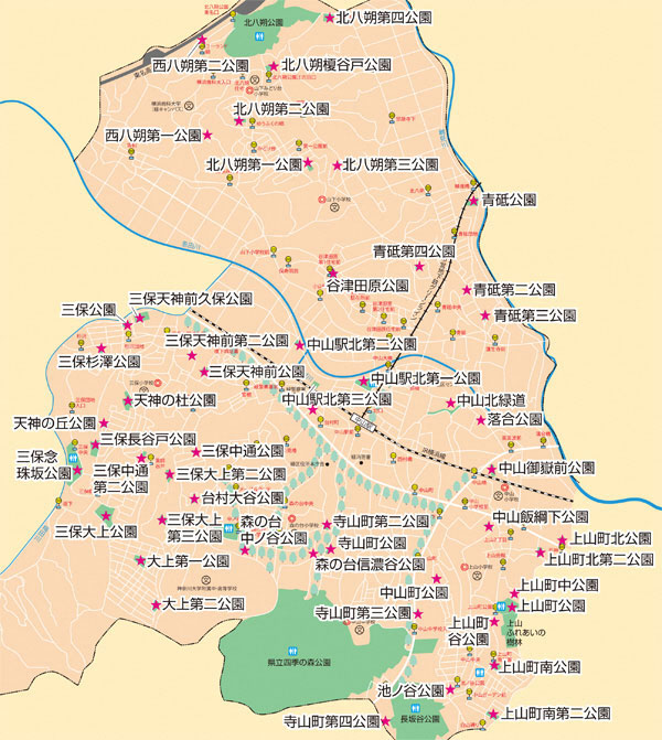 | 北八朔榎谷戸公園 | 697 m2 | × | ○ | ○ | ○ | ○ | × | × |