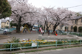 春には桜が綺麗です。遊具や砂場で遊ぶ園児の姿がよく見られます。