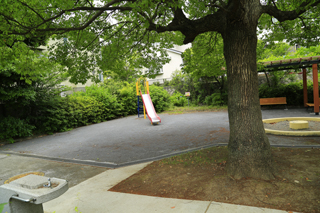 環状4号線沿いにあります。藤や砂場がある小さな公園です。