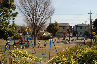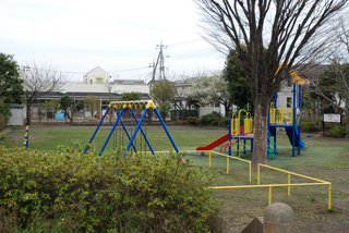 午前中は近隣の保育園児が、午後は小さなお子さんが遊びに来て、とても賑やかな公園です。芝生広場や複合遊具のほか、花壇には保育園児が植えた花がいつも綺麗に咲いています。