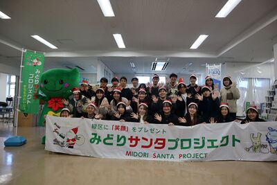 みどりサンタプロジェクトは、若者や子どもたちが中心になって、サンタの帽子をかぶりまちのごみ拾いをする活動です。あなたも一緒にごみ拾いをして、まちに「きれい」と「笑顔」をプレゼントしませんか!