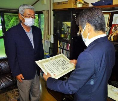 そのため、5月21日(木曜日)に岡田区長が個別に受賞した皆さんを訪問し、表彰状を授与しました。