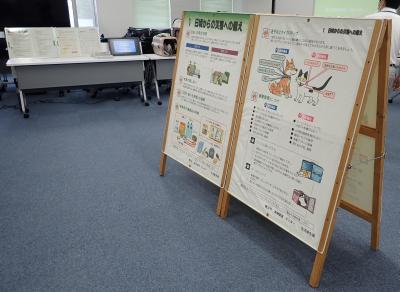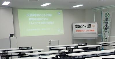 講演会では「人も動物も支援すること」を目的として結成された災害支援団体「動物支援ナース」の矢崎佐枝さんと谷茂岡良佳さんが講師を務め、専門家の立場から災害のことや同行避難、飼い主の日ごろからの備えなどの話がありました。