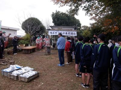 森の散策後、森に隣接する畑で収穫したサツマイモで作った焼き芋がお土産として配られ、参加者は笑顔で持って帰っていました。