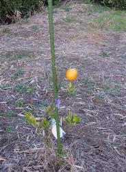 畑にはカリフラワーやソラマメなどの野菜、みかん、キウイフルーツ、ぶどうなどの果物が栽培されていました。