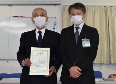 この記録達成に伴い、2021年1月23日に、「市民防災の日」緑区推進委員会の岡田区長から、白山地区連合自治会の山口会長へ感謝状を贈呈しました。