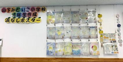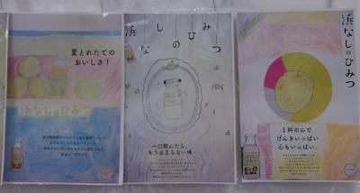 山下みどり台小学校4年生が作成した「浜なしのひみつ」PRポスターを緑区役所で展示しています。
