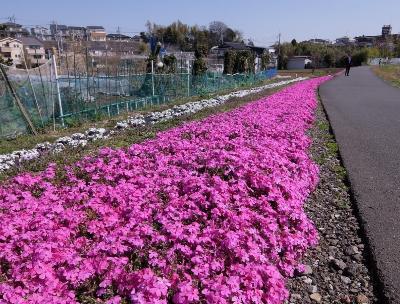 2021年3月26日(金曜日)恩田川沿いの土手の芝桜が満開になりました