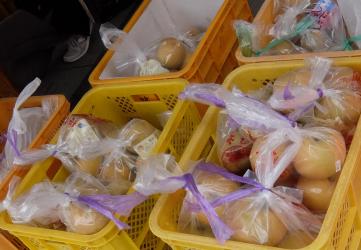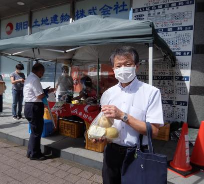 各直売所では、販売スタート時間のかなり前から、たくさんのお客さんが並んでいて、その人気ぶりに改めて驚きました。今年も、密を避けるため売場に入るお客さんを一人までに制限したり、お客さんにアルコール消毒をお願いするなど、感染症対策を実施しながら開催されていました。