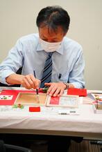 計22名が参加し、皆さんがそれぞれ来年の寅年カレンダーボックスを作成しました。細かい作業に手が震えながら、いったいどうなってしまうのだろうかと戸惑い、見かねた先生に多大なるご協力をいただき何とか完成させることができました。