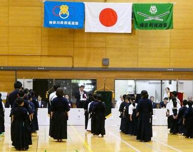 6月16日(日曜日)、緑区剣道連盟主催(会長:子島 直人氏)による「60周年記念 緑区区民剣道大会」の開会式が、今年4月にリニューアルした緑スポーツセンターで開催されました。少年少女をはじめとした多くの剣士が参加し、伝統ある武道にふさわしく、厳かな迫力のある内容でした。特に、佐藤八段と瀧本七段の日本剣道形は、見ていて息をのむほどの真剣さが伝わってきて、厳粛な気持ちになりました。