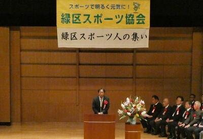 2月1日(土曜日)、緑区スポーツ協会(会長:濵園睦夫氏)による「緑区スポーツ人の集い」が緑公会堂で開催され、区内でスポーツやレクリエーションの振興・発展に貢献された方々や、各種大会で優秀な成績を収められた選手の皆様が表彰を受けられました。