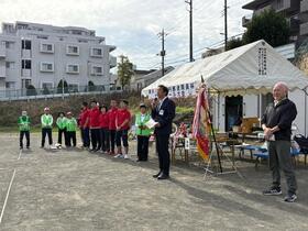 10月3日(金曜日)、十日市場少年スポーツ広場において、緑区ゲートボール連合(会長:柳下剛氏)による「第14回緑区内郵便局長杯ゲートボール大会」の開会式に参加しました。