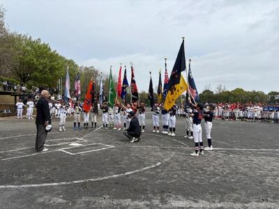 4月5日(日曜日)、長坂谷公園多目的広場にて、緑区学童野球連盟(会長:名川 一郎氏)主催による「第102回春季大会」開会式が開催されました。前日は春の嵐となり、大変な風雨でしたが、グラウンドコンディションも何とか持ち直し、開会式は晴れ間ものぞく中で無事に行われました。