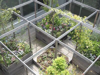 緑区役所の4階にあるライトコート(中庭)を活用して、来庁者が庁舎内でも緑に親しめる空間を創出し、脱炭素化の実現にも寄与する取組として、市民向け花壇「ミドリンGARDEN」を設置しました。 ご来庁の際には、ぜひ綺麗なお庭をお楽しみください。